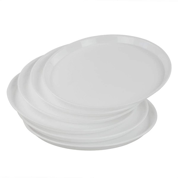 Ponpong Round Plastic Serving Trays Platters, White, 6 Packs