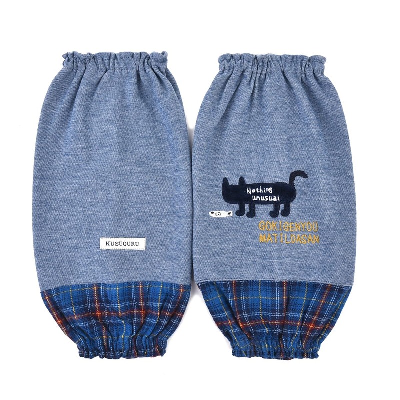 - Knit arm covers with switched check on cuffs