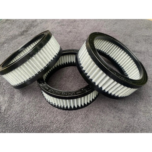 These are our K&N style FAST Air Filters for Pontiac Tri-powers. These replacement air filters are designed to increase horsepower and acceleration while providing excellent filtration. The filters are washable and reusable and are custom designed to fit all Pontiac Tri-power systems with a 5.50” OD base. See specific fitment below. Filters have an outside diameter of 5.50” and an inside diameter of 4.50”. Please note that there is NO OIL required for these air filters! Sold as a set of 3 filters.