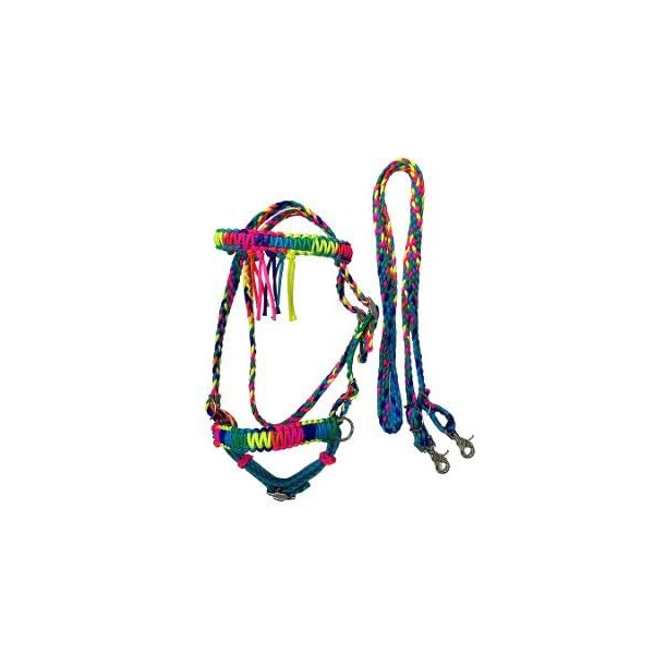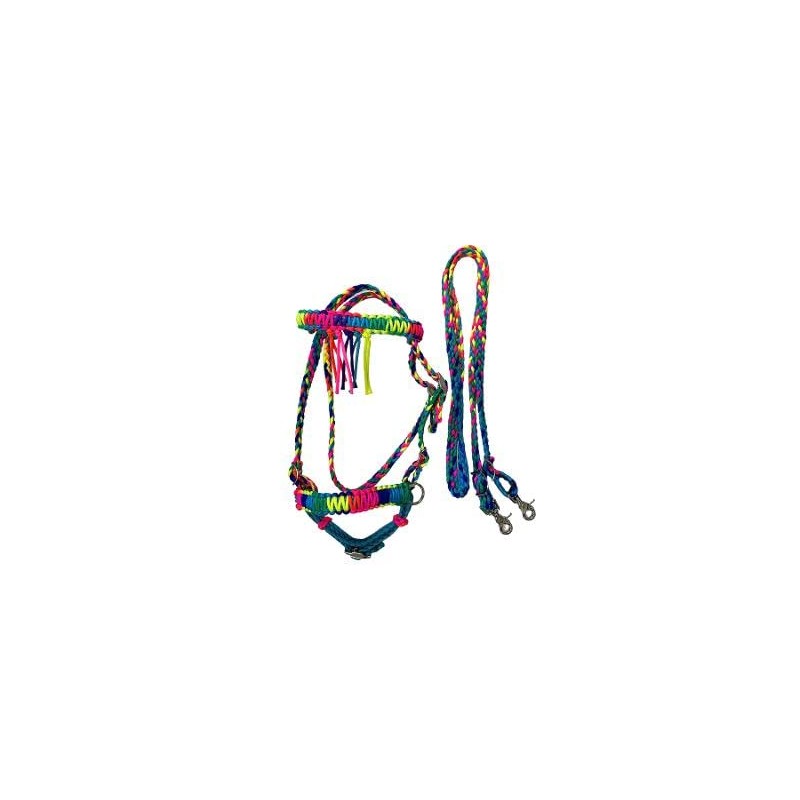 pony bitless bridle horse tack side pull hackamore rainbow and turquoise