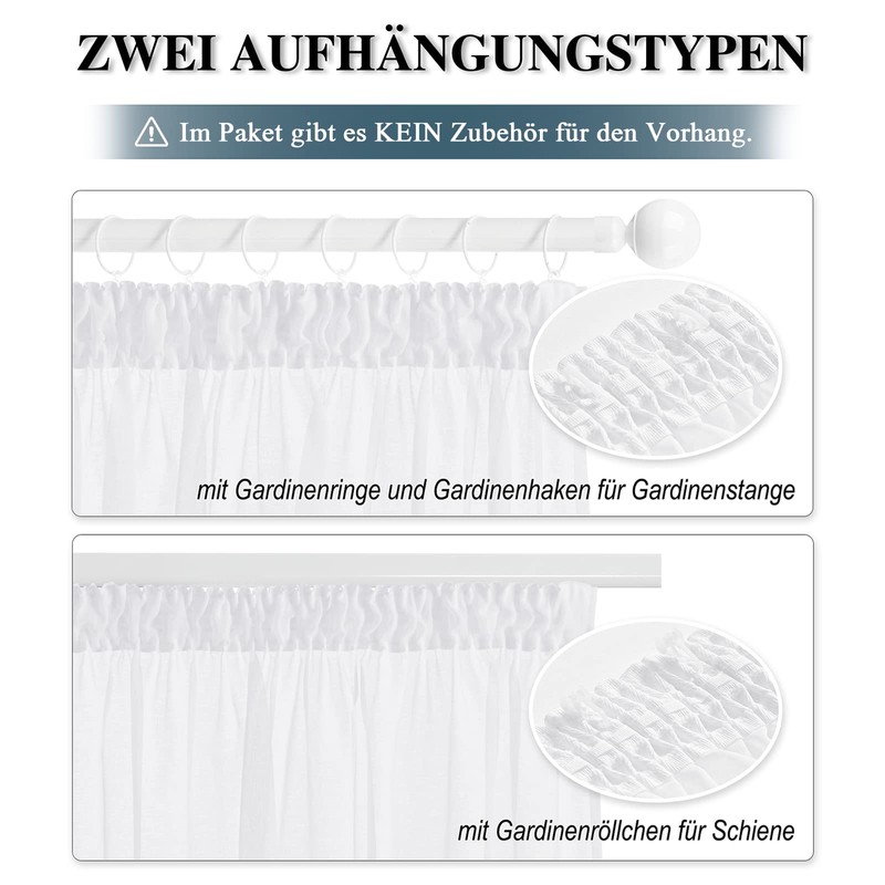 PONY DANCE Curtains with Ruffle Tape, White Curtain, Transparent Modern Curtains, Living Room, Linen Look, Sheer Voile Curtains for Living Room, Set of 1, H 260 x W 200 cm