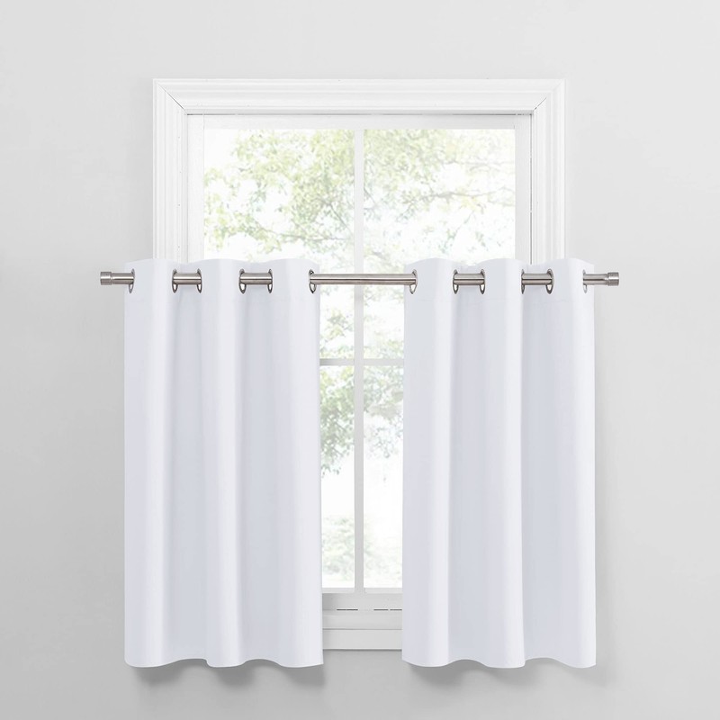 PONY DANCE Pure White Room Darkening Curtains - Energy Saving Drapes for Small Windows in Kitchen, Bedroom, and Bathroom | 2 Panels, W 34 x L 24 inch | Ideal Cafe Curtains