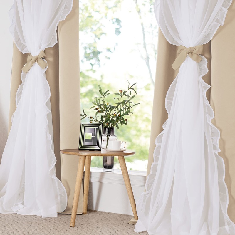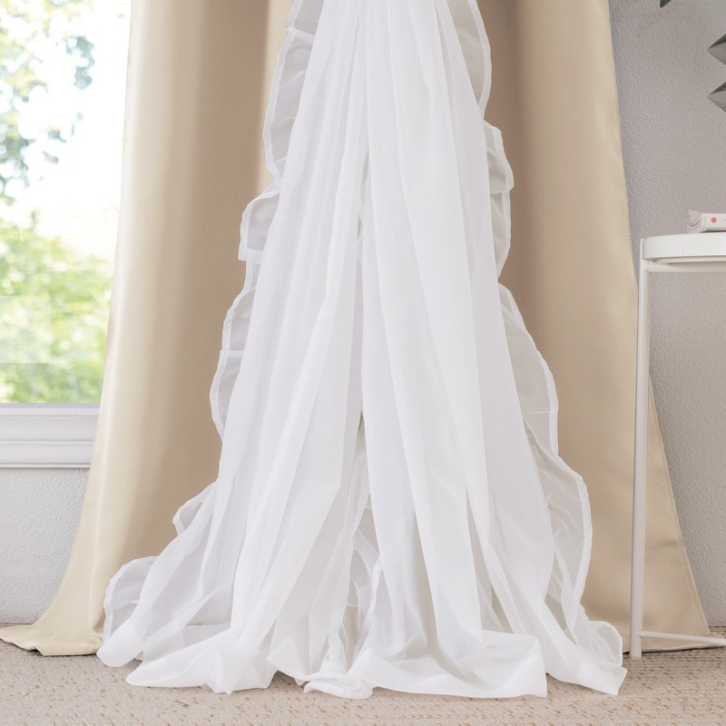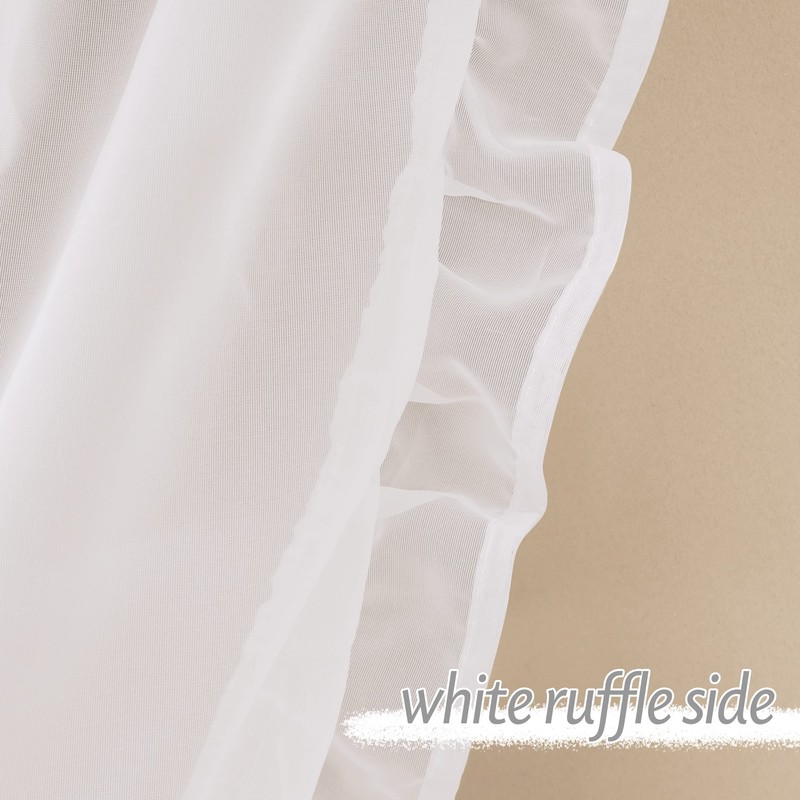 - Ruffle Sheer: The fabric is perfect and the ruffle adds a nice charm, something soft and feminine and these are perfect. Super soft and thick, very pretty for a rustic/farmhouse look