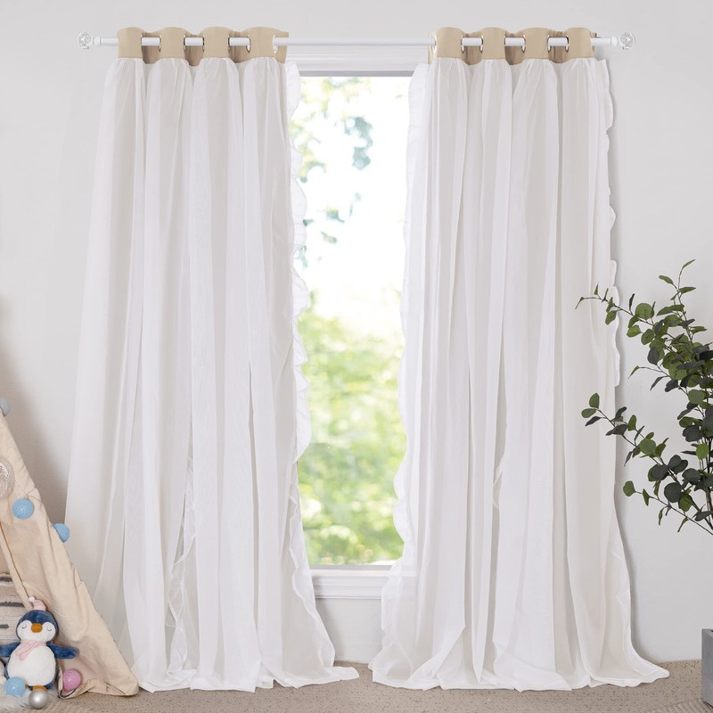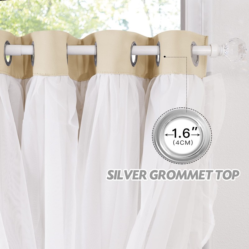 - Double Layers: Made of 100% polyester fabric, block out a fair amount of light & heat while adding privacy. The white sheer panel bring an elegant and luxurious feeling