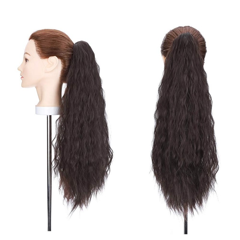 Ponytail Extension Clip-In Extensions Corn Wave Hair Extension with Clip Soft Natural Ponytail Hairpiece 60 cm, 165 g Dark Brown