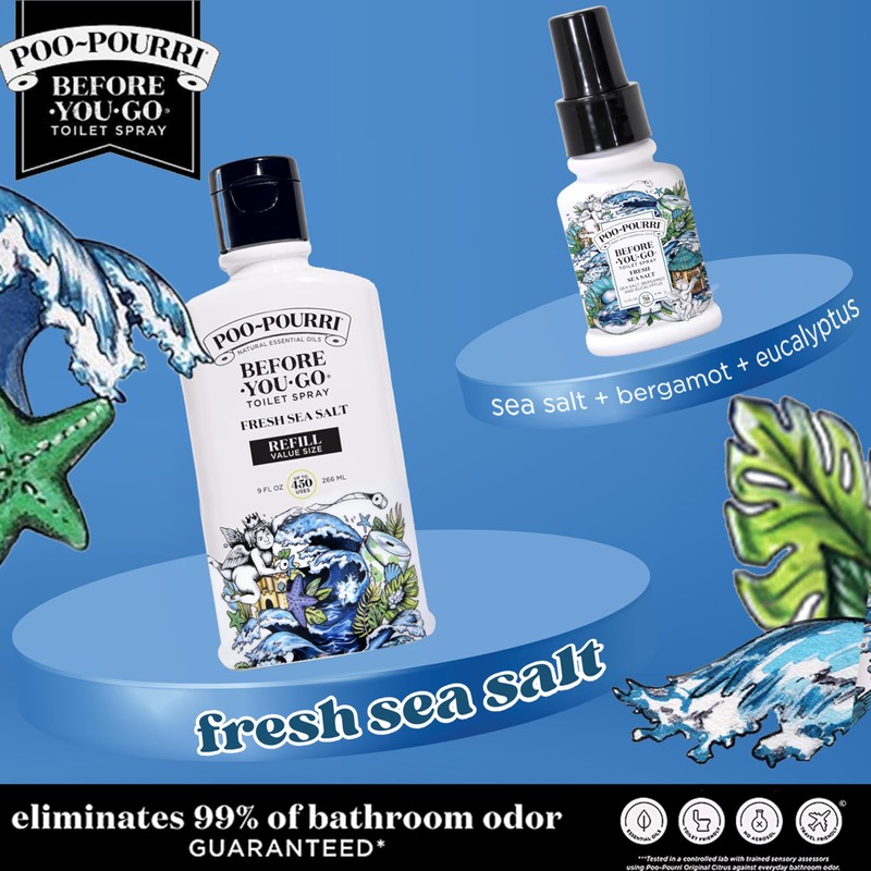 Poo-Pourri Fresh Sea Salt 9 Ounce Refill Bottle and 1.4 Ounce