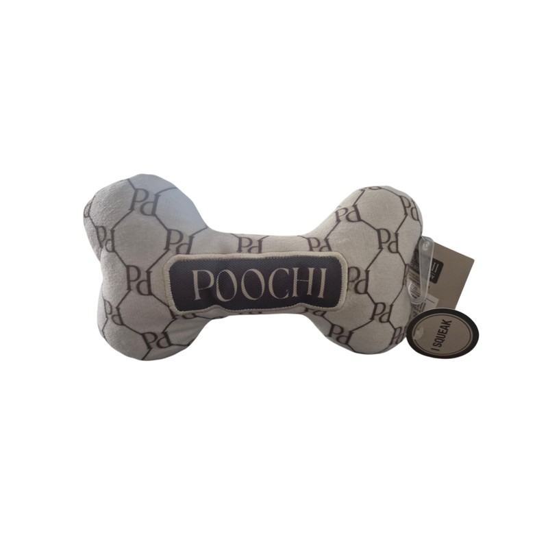 Poochi Designer Bone-Shaped Dog Toy, beige pattern, Plush Squeaker