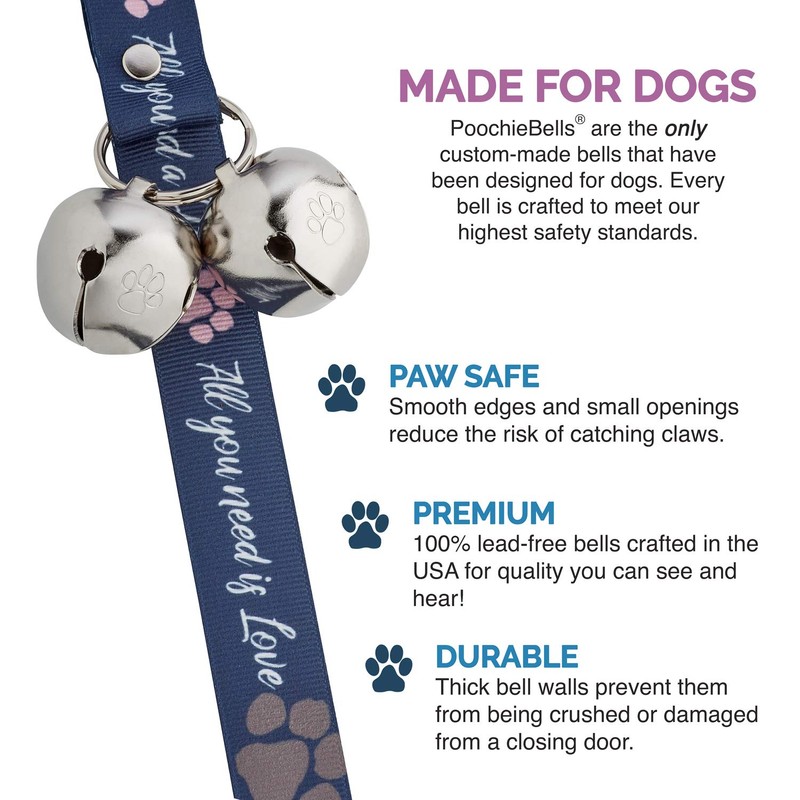- Proudly handcrafted in the USA, every set of PoochieBells is tested and quality inspected making them safer than inexpensive and imported alternatives. These 1.25” bells have a clear and distinct sound, so you'll be able to hear the ring and jingle throughout the house.