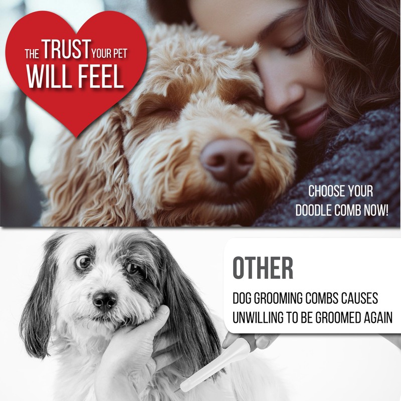 - ❤️ DUAL LENGTH – De matting dog comb offers dual maintenance benefits in a single comb. The long teeth dog brush comb goes deep into your pet's fur, effectively removing tough mats and stubborn tangles at the root. Meanwhile, the short metal teeth gently sweep away loose fur and dirt from the top layer, ensuring complete grooming experience. This is the right dog comb for undercoat and most used poodle comb for dogs professional grooming services. It's a great gift for your furry friend and any groomer.