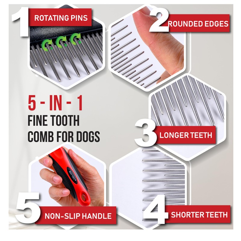 Poodle Comb with Rotating Teeth - 5-in-1 Dog Dematting Tool - Used for Small Size Breeds and Puppies - Cat Comb for Shedding and Deshedding