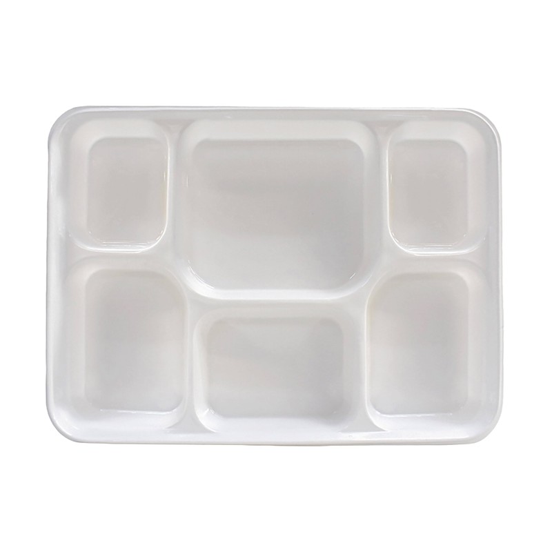 Pooja Bazar 6 Compartment White Disposable Party Thali Plates (200 Pack)