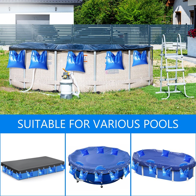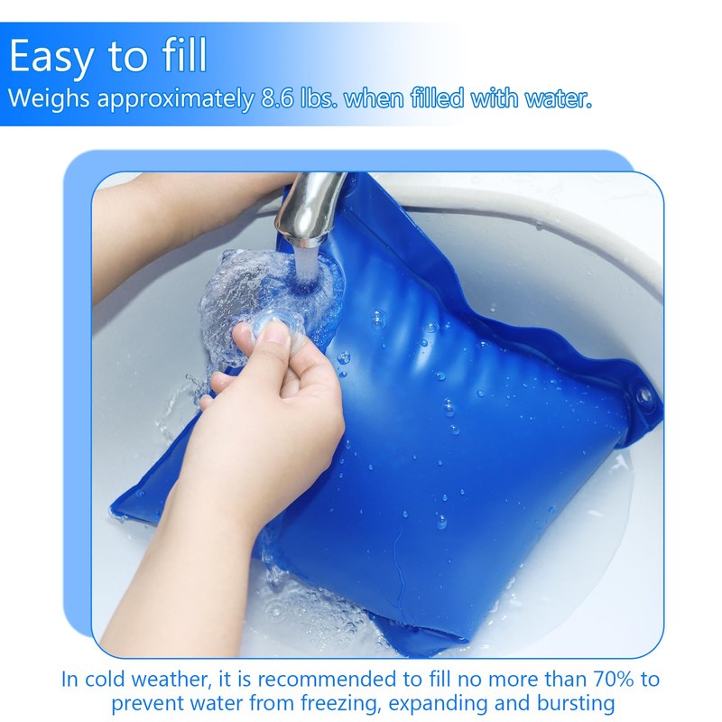 - DURABLE MATERIAL: The pool cover weighted block water bag is made of thickened heavy-duty PVC material, which is safe and environmentally friendly, strong and durable, cold-resistant, and ccan be used safely at temperatures as low as -10℉ (-23℃) in winter.