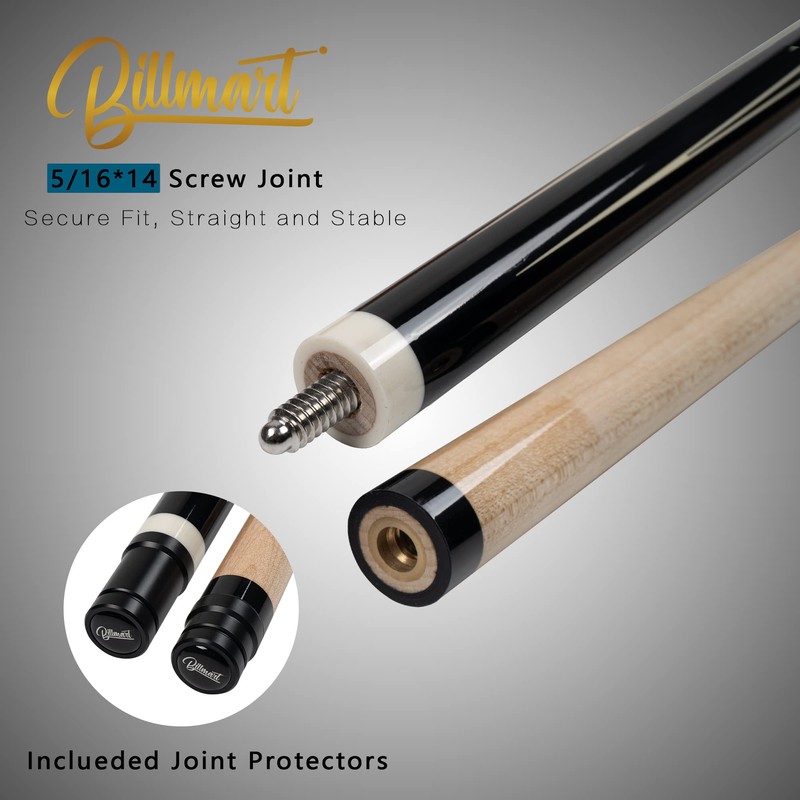 - 【TIP&FERRULE】Billmart Pool Stick Features 13mm High-quality Brown 7 Layered Tip glued-on XTC Ferrule, XTC Ferrule Capped and Threaded onto The Shaft.