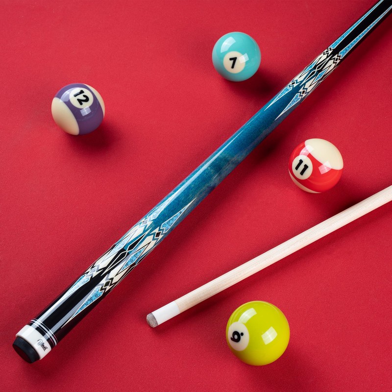 - 【BUTT】Black with Cream Points and Imitation Turquoise , Vibrant Colors, Sleek Wrapless Nature Blue Handle, High-gloss Super UV Finish Protects Pool Cue from Fading & Chipping.