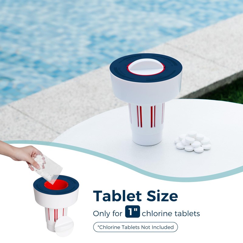 POOL FELLOWS Pool Tablet Dispenser ONLY for 1 inch Tablets, Floating Tablet Holder with Reminder and 3 Ajustable Settings, Durable Floater for Pools, Small Size, Blue