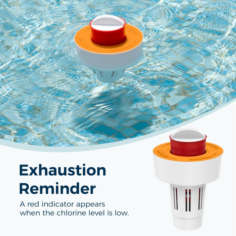 Pool Chlorine Tablet Dispenser for 1 inch Chlorine Tablets, Floating Chlorine Tablet Holder with Reminder and 3 Ajustable Settings, Durable Chlorinator for Swimming Pools, S Size, Orange