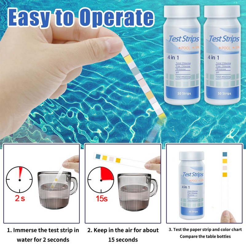 - 4 in 1 Test - Our test strips measure free chlorine, bromine, alkalinity and pH. You can be sure that you keep track of all the important parameters.