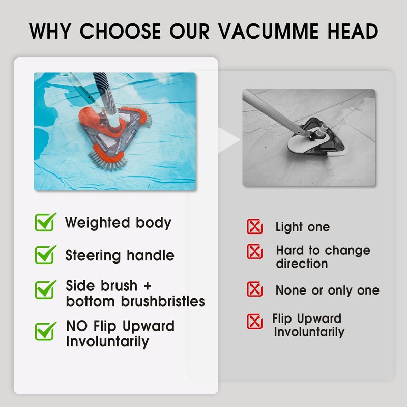 TidyMister Pool Vacuum Head with Side Brush,Universal Steering Handle & Universal Rotatable Hose Adapter,Swimming Weighted Pool Brush Vac (Safe for Vinyl Liner Pool) for Inground & Above Ground Pools