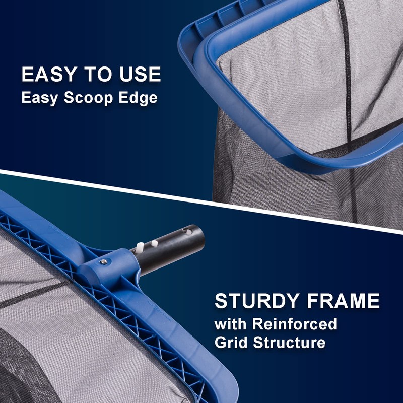 • FINE MESH & DURABLE POOL NET SKIMMER: Pool net wih reinforced frame and durable fine mesh nylon netting bag lead to longer lifetime, is able to scoop the finest leaves & debris.