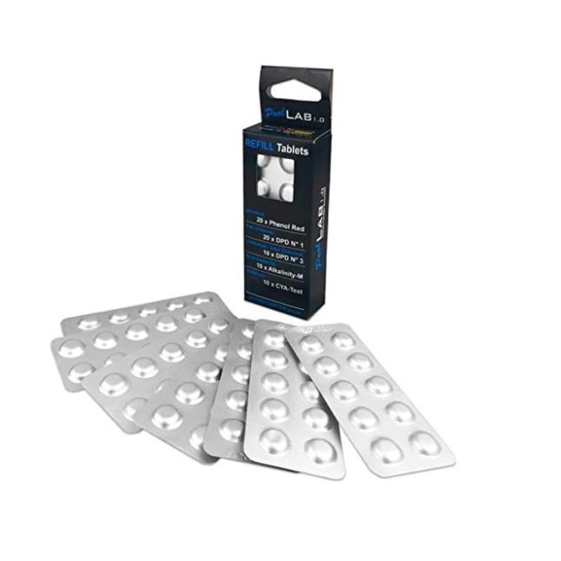 Refill pack with 70 tablets for PoolLab 1.0 photometer and pool total 9 in 1 MultiTest content refill pack.