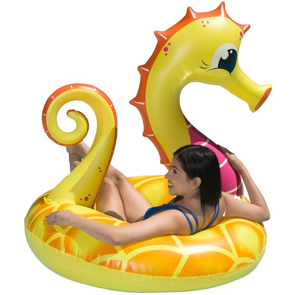 Poolmaster 48-Inch Inflatable Swimming Pool Party Float, Seahorse, Yellow