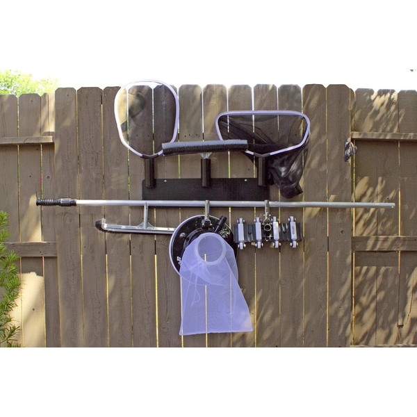 - Keeps pool maintenance tools neat and tidy and off the ground