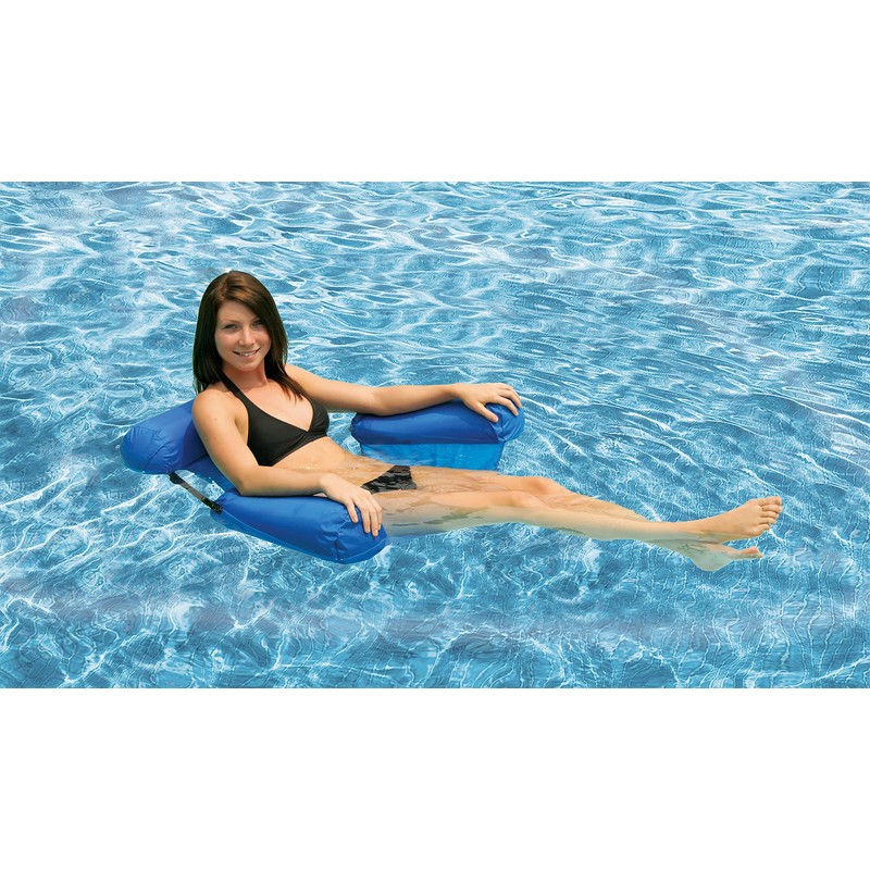 - COMFORTABLE: Side arms and headrest features integrated inflatable bladders made of heavy-duty vinyl to provide back and arm support for all-day lounging in the swimming pool, floating on the lake or drifting on the river. In this floating lounge chair, you'll always be semi-submerged so it's easy to keep cool under the hot summer sun