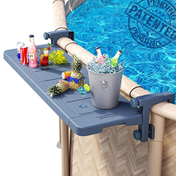 POOLHACKER Poolside Bar, [Original] Swim Up Bar Exclusively for Above-Ground Round Pools. Patio Poolside Table Smart Fold Easy Maintenance, Weather Resistant Stable Tabletop (Phantom Gray)