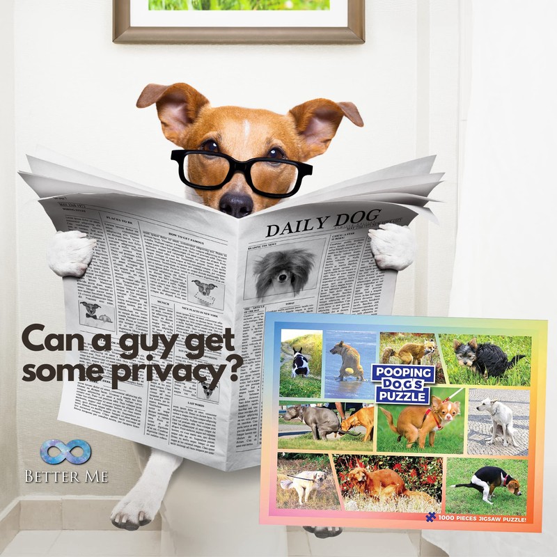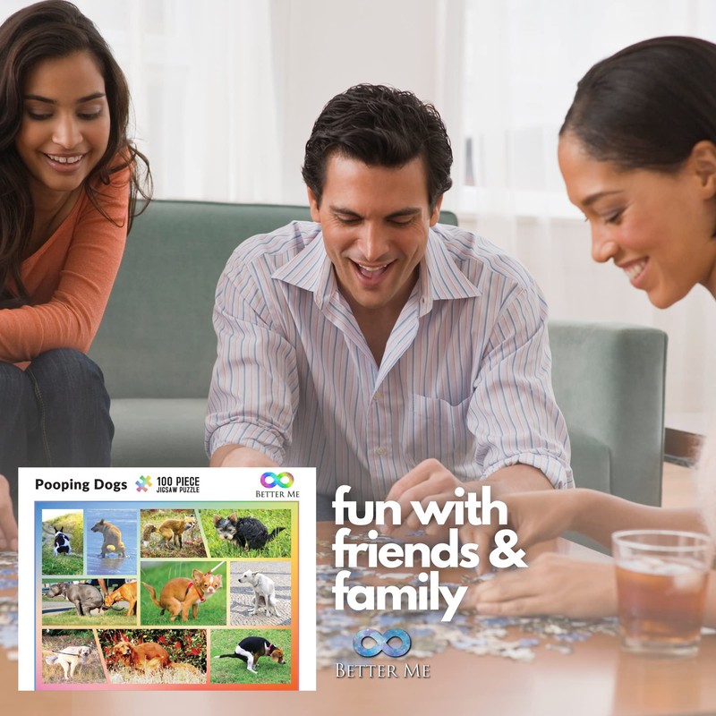 - Silly pooping dog jigsaw puzzle makes a funny gift. Perfect friends and family pranks. See their reaction to this pack of hilarious pooping pooches