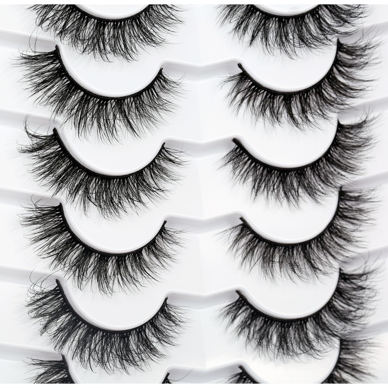 Pooplunch False Eyelashes Fluffy Cat Eye Look Wispy Fake Eyelashes Faux Mink Lashs 7 Pairs Pack