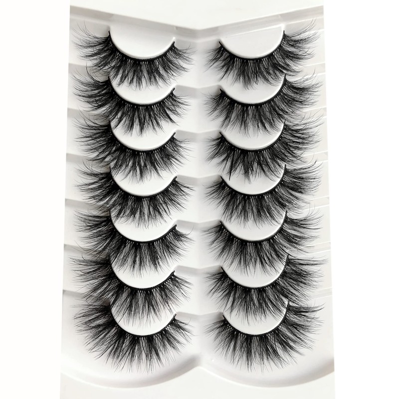 Pooplunch Cat Eye Look 8D Faux Mink Lashes 7 Pairs MultipackHandmade & High Quality100% Vegan & Cruelty FreeWispy Fluttery & Fluffy VolumeComfortable Flexible Cotton BandDurable & Reusable up to 15 WearsA pair of right false eyelashes can always boost your confidence by making your eyes brighter and more flattering.Just trust Pooplunch brand with your false eyelashes, as we have always been a leader in eyelash beauty field. Let everyone be enchanted in your charming eyes!