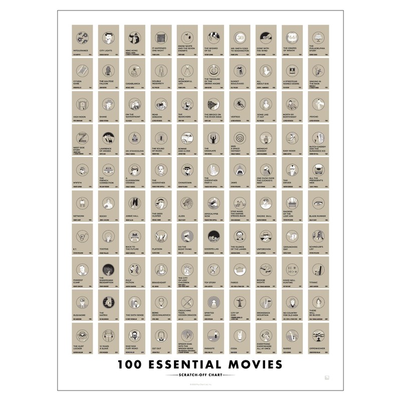 Pop Chart | 100 Essential Movies Scratch-Off Chart | 12" x 16" Scratch-Off Poster | Original Bucket List Poster of Must-See Movies | Featured in Wirecutter and on Huckberry