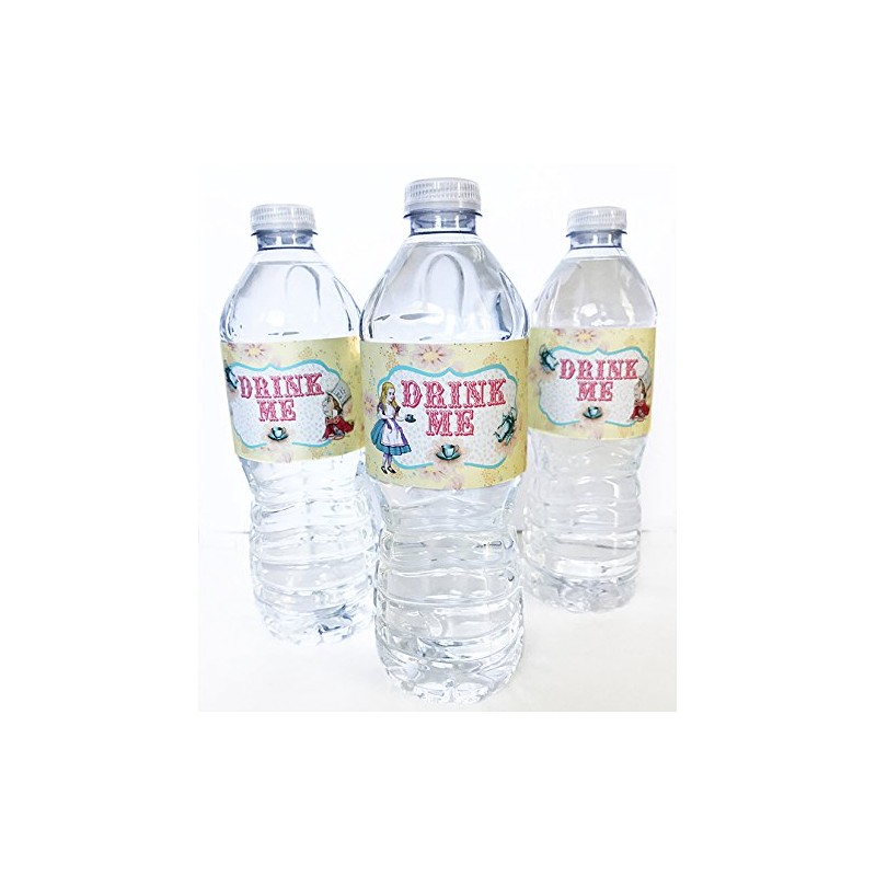 POP parties Alice in Wonderland Bottle Wraps - 20 Alice Water Bottle Labels - Made in The USA