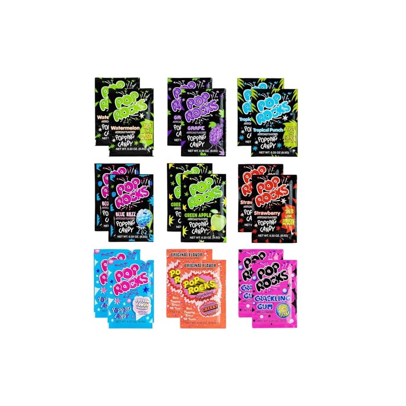 - INCLUDES: 18 Pop Rocks Popping Candy 0.33oz packs - 2 of each flavor