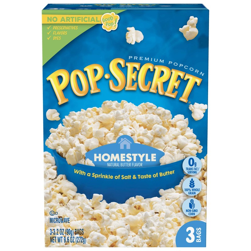 - HOMESTYLE POPCORN: Pop Secret Homestyle Butter Flavor Popcorn is buttery flavor that pops up light and fluffy