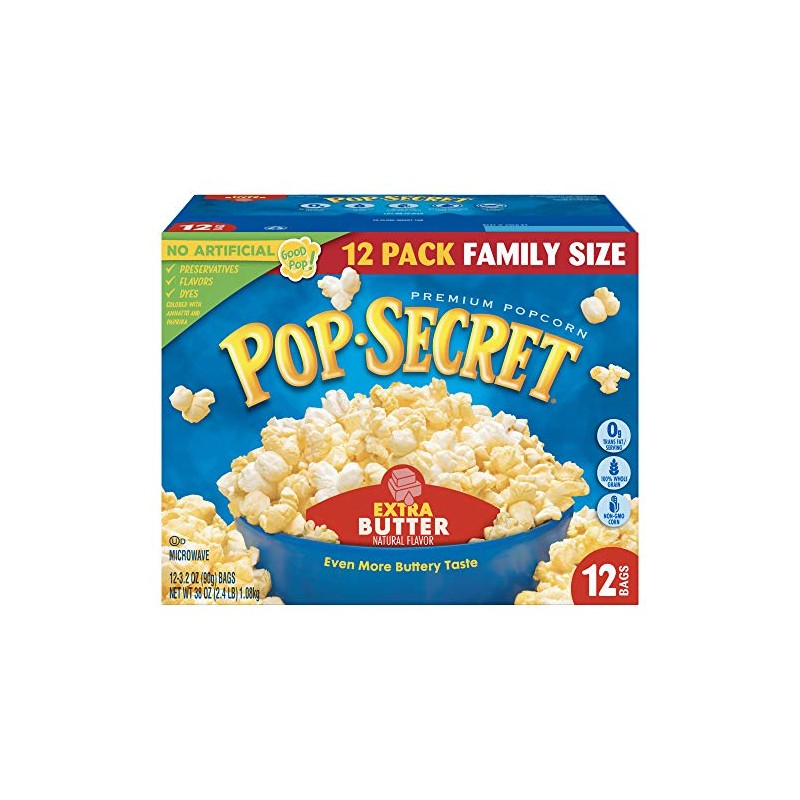 Pop Secret Popcorn, Extra Butter, 3.2 Oz Microwave Bags, 12Count Box