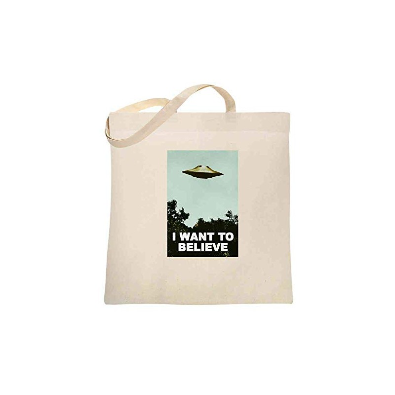 Pop Threads I Want To Believe UFO Aliens TV Retro 90s Canvas Tote Bag Natural 15x15 inches