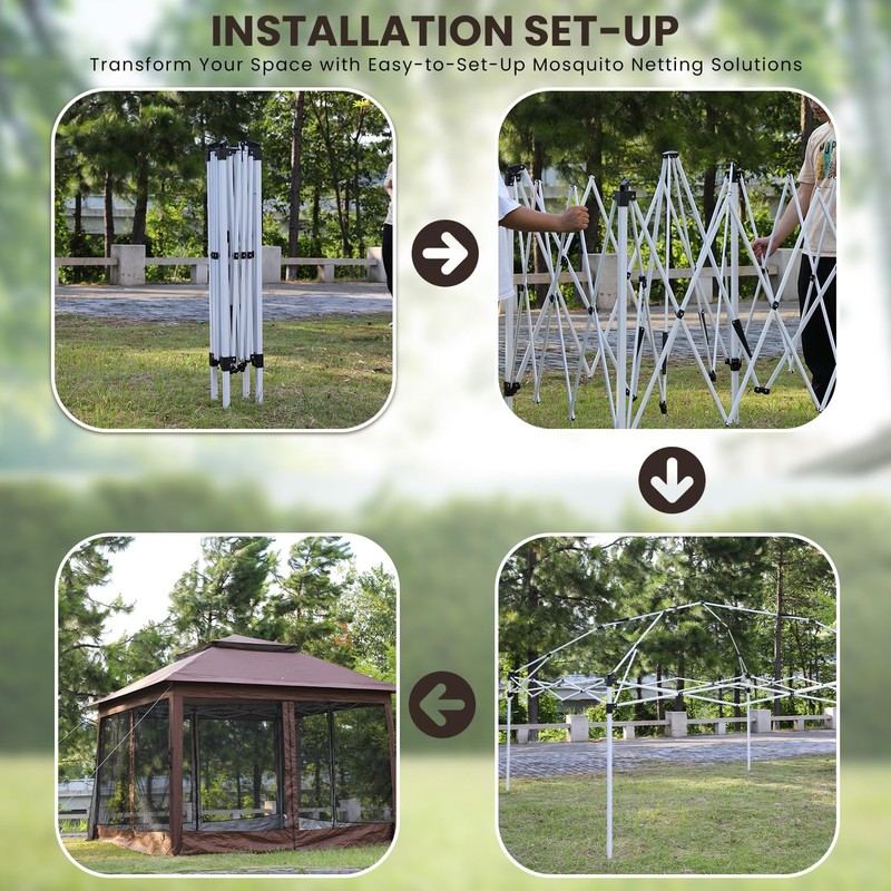 - ♦ All Weather Resistant: Our outdoor gazebo is crafted with waterproof fabric to withstand various weather conditions. This gazbo tent also provides excellent protection from rain, wind, and sun. This pop up tent is ideal for year-round use in any outdoor setting.