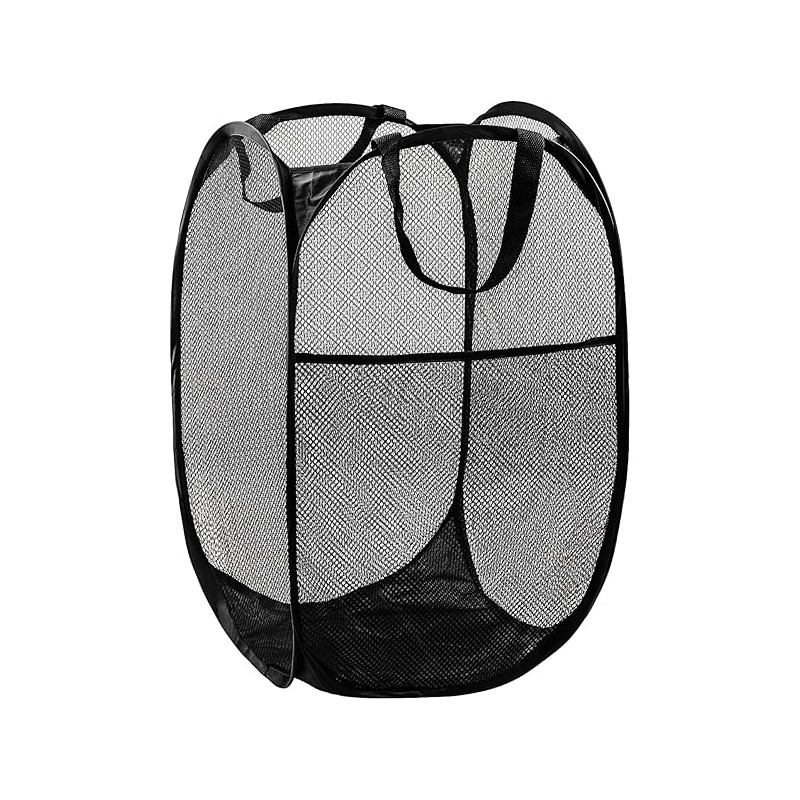 Pop Up Hamper, 1 PCS Mesh Pop Up Laundry Hamper, Foldable Mesh Laundry Basket with Space-Saving Design for Home, Dorm, Travel & Storage - Black