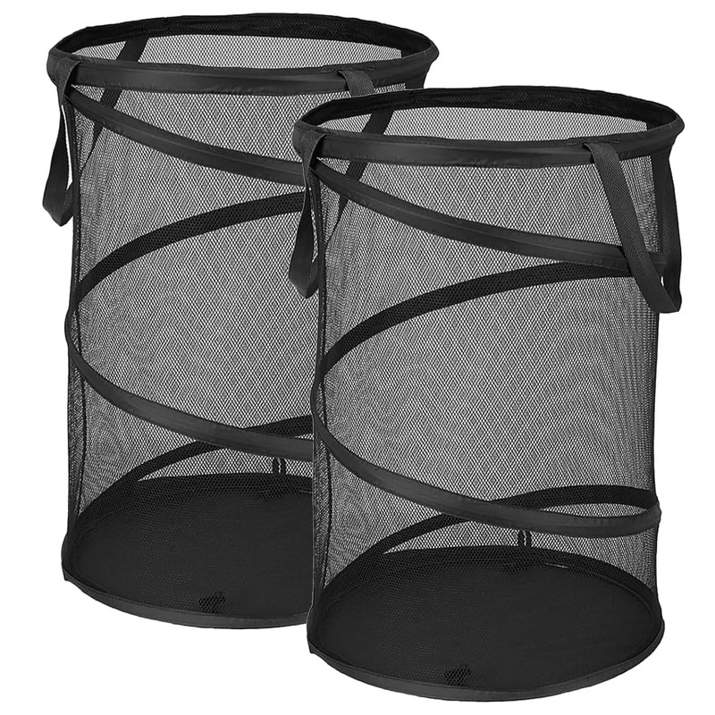 Pop Up Hamper for Laundry Mesh Collapsible Laundry Basket | Large Clothes Hamper - Black 16"L x 16"W x 24"H (Pack of 2)