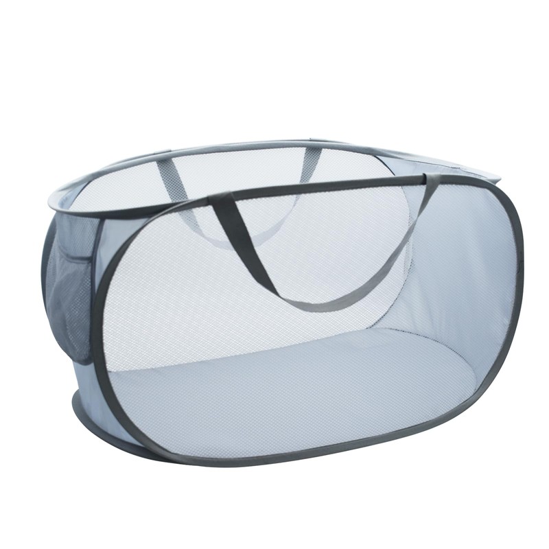 Pop Up Laundry Hamper,Collapsible Horizontal Baskets with Handles & Side Pocket,Foldable Sturdy mesh for Laundry Room,Bathroom,Kids Room,College Dorm or Travel (Grey)