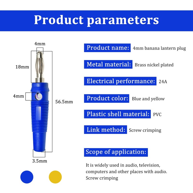 - Einfach zu bedienen:Bananenstecker 4mm Macht Die Kabelverbindung Stabiler, Es Ist Kein Schweißvorgang Erforderlich Und Die Verbindung Ist Einfach Und Unkompliziert.Einfach Die Drähte Abisolieren, In Den Stecker Stecken, Schrauben Festziehen Und Fertig,der Laternenförmige Stecker Ist Fest Verbunden.