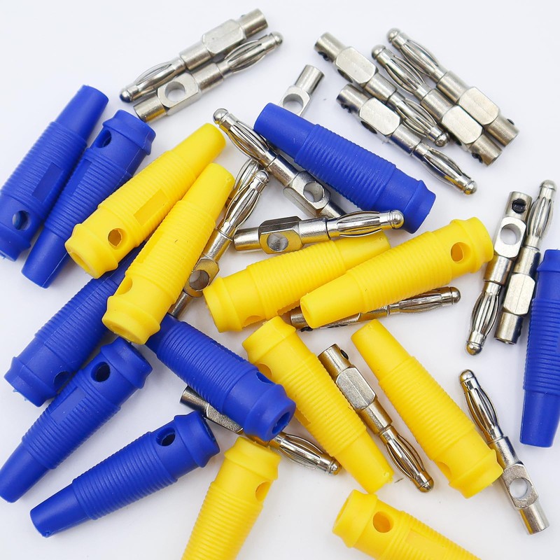 POPAPIE 16 Stück Bananenstecker 4mm,Bananenstecker Lautsprecher,20A Banana-Steckverbinder,Banana Lautsprecherstecker Für Kabel Boxen Endstufen Receiver Stereoanlagen (Blau + Gelb)