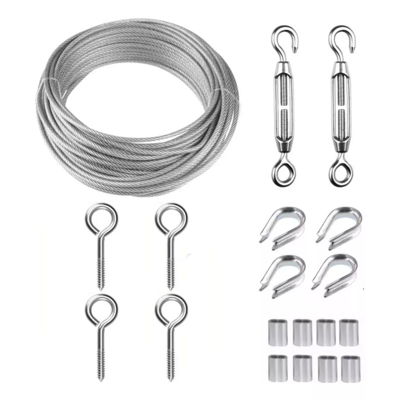 Kit de cable de acero inoxidable se puede utilizar para hacer el tendedero de barandilla de cable de bricolaje, barandilla de cubierta balaustrada, luces de cadena de bricolaje, barandilla de cable al aire libre, barandillas de escaleras, campanas de viento, luces colgantes, cortinas colgantes y así sucesivamente