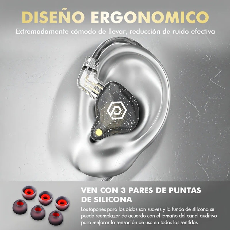 Tipo de auriculares: monitores de controlador dinámico en la oreja