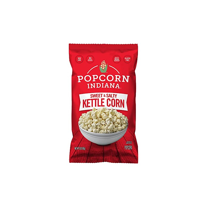 - Includes Six (6) 3oz. bags of Popcorn Indiana Kettle Corn