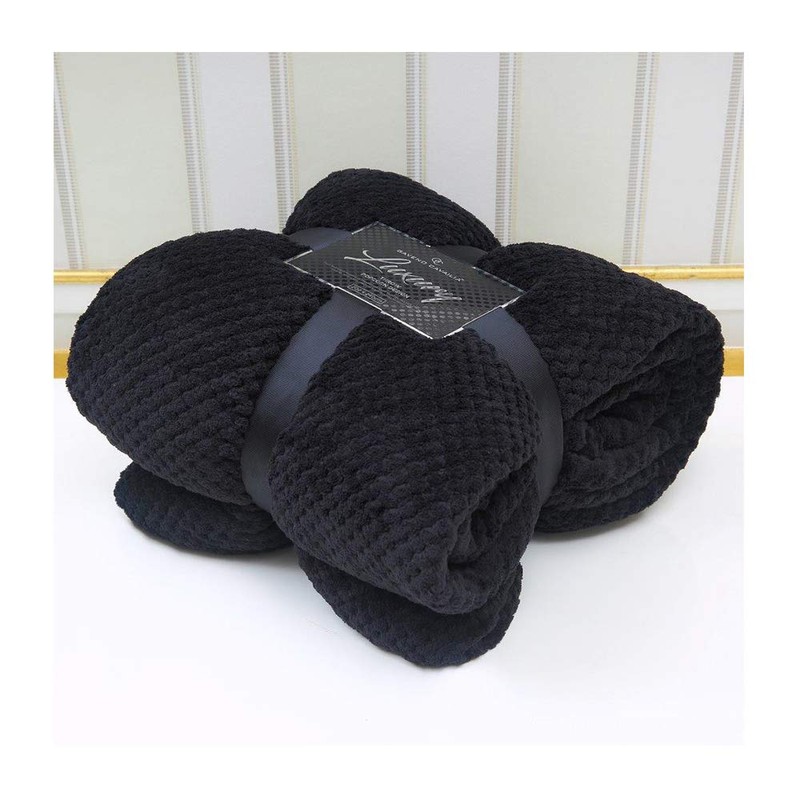 Popcorn Throws Blanket Double Size Bed Sofa Cover Sofa Soft Warm Large, 150 x 200 Cm, Black