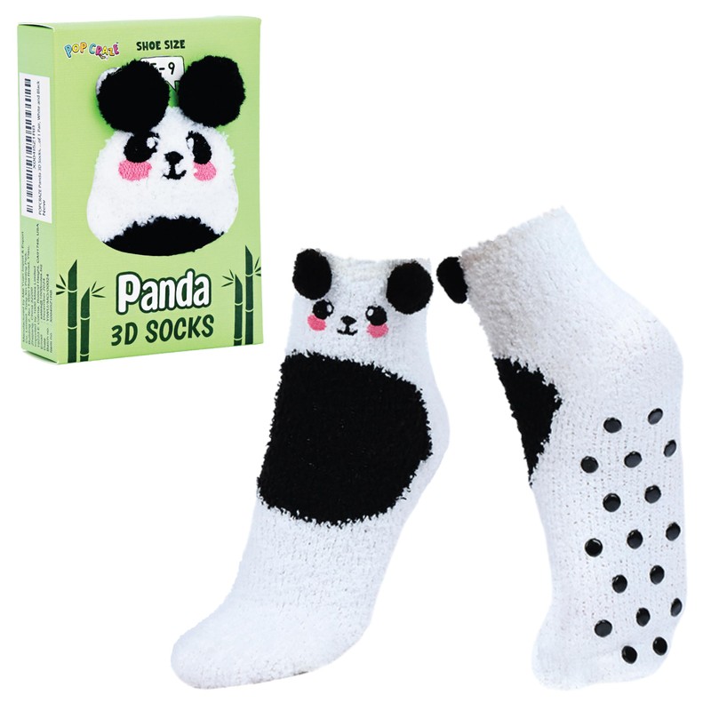 POPCRAZE Panda 3D Socks, Shoe Size 6-11, Set of 1 Pair, White and Black