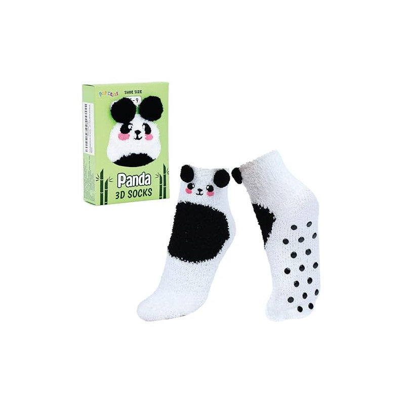 - Adorable Panda Design: These cozy 3D socks feature an adorable panda face design with fuzzy black ears and pink cheeks for a playful, whimsical look.