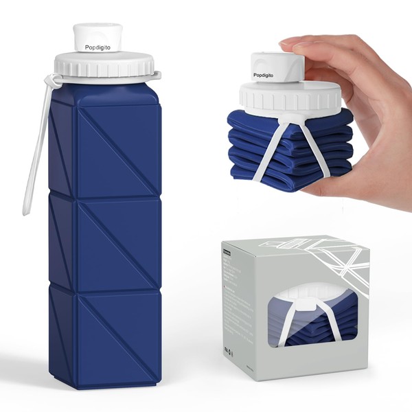 Popdigito Collapsible Water Bottles,20.6oz Silicone Foldable Leakproof BPA Free Reusable Lightweight Portable Sport Water Bottles For Travel,Camping,Hiking,Outdoor Indoor,Detachable for Dishwasher